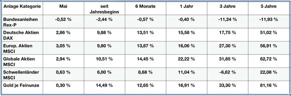 Der Ratschlag „Sell in may and go away” wurde nicht verfolgt. Die Anlage in längerlaufenden festverzinslichen Wertpapieren machte auch im vergangenen Monat wenig Freude.